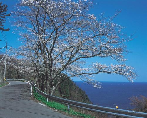 まるでトンネルのような桜並木が島根町の加賀(佐波)から野波まで5kmにわたって続いています。その桜の数約700本、海とサクラのコントラストは圧巻としか言いようのないものです。晴れた日には北東方向にある、遠く隠岐の島をくっきりと見渡すことができます。