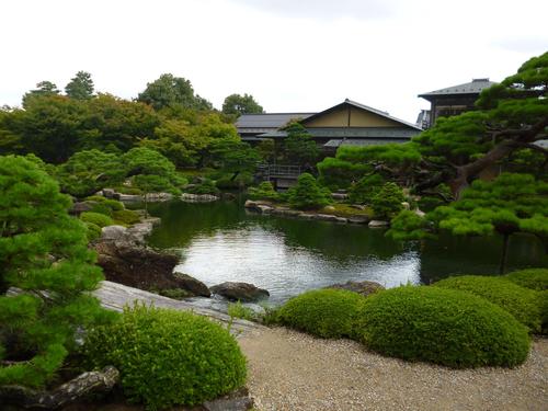 庭園は、幾つもの橋があり下には川が流れています。金魚も泳いでいます。滝も数か所あります。樹木は松やもみじや藤など四季を通して色鮮やかさが楽しめるように配置されています。