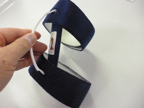 手引きをする晴眼者の腕に、この「ハーネス しんらい」を巻きつけ、