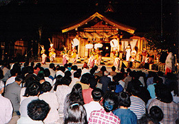 夜間に庭火(かがり火)をたいて神楽を奉仕する祭典を行った伝統を再現したお祭りで、