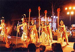 庭火祭は熊野大社の境内で、幻想的なかがり火のもと、世界の民族音楽を紹介する催し。