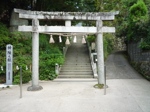 写真1)玉作湯神社 入口鳥井(写真右に境内に上がる坂道)