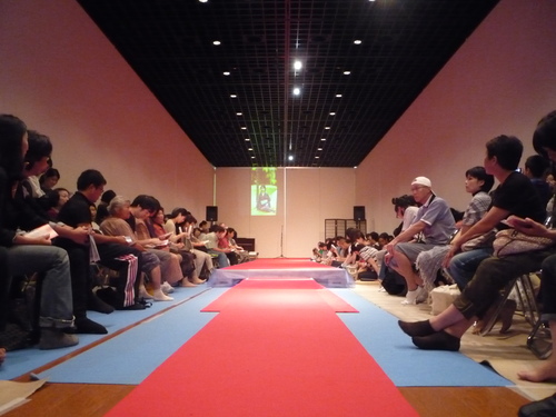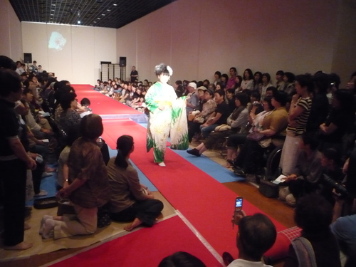 細長い通路状の会場に赤い毛氈がひいてあり、毛氈の両脇にはお客様が300人。