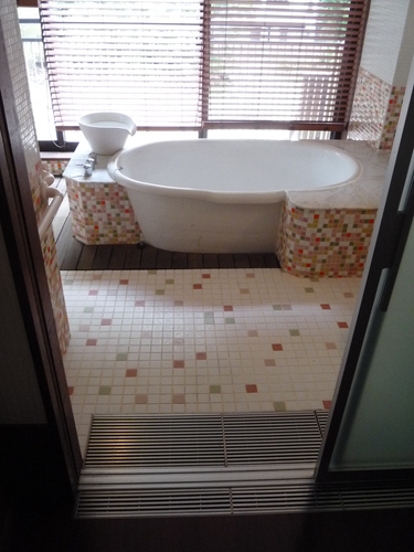 お風呂は大きな腰かけが設置され、入口も広く作ってありましたよ。