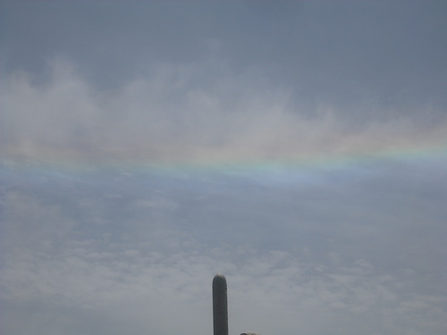 その代わりに、不思議な現象を見ました。何と虹っぽいものがみえました。虹は、普通は円弧を描いていますが、水平か反対に上を向いて反っている感じです。