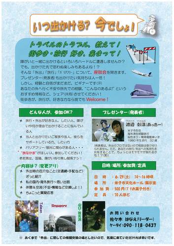 ※あくまで「外出」に関しての情報交換の場とたいので、気楽に来ていただければ幸いです。