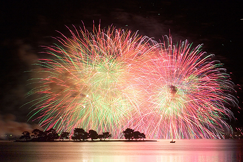 松江では、宍道湖の湖上に2カ所の人工島をつくって、そこから打ち上げることになります。