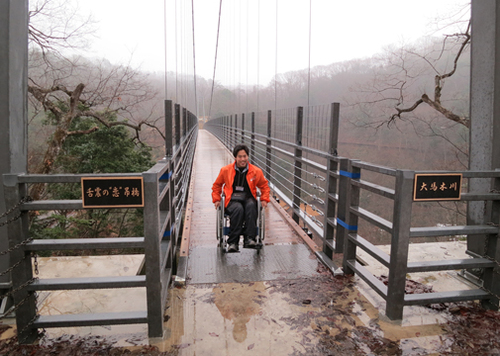2013年に高さ45m、長さ160mの「舌震“恋”吊り橋」とバリアフリー遊歩道が全開通しました。宇根駐車場から下高尾駐車場まで全道がバリアフリー化され、車いすでも奇勝を見る事ができるようになりました。
