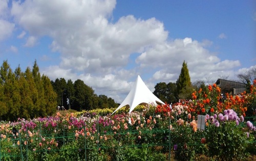 腹ごなしが済んだらいよいよお花畑へ、ダリアって赤い花のイメージが