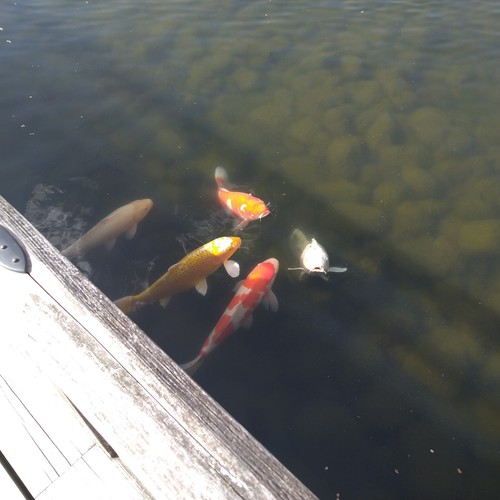 池には鮮やかな錦鯉がたくさん。暖かい時期には餌やりもできるようです。