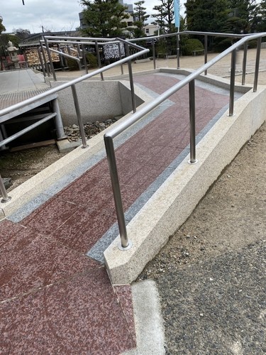 スロープは拝殿のサイドにあります。人によっては傾斜が急かもしれません。