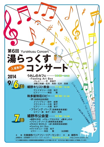 毎年恒例、佐賀嬉野BFTC主催の「湯らっくすコンサート」を今年も開催いたします!