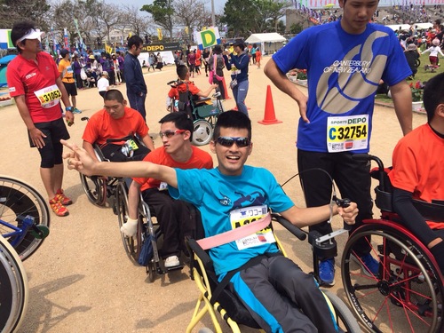 昨日うるま市の海中道路でマラソン大会が行われ、今年も「そら」の児童と「sorato」のメンバーが出場しました。