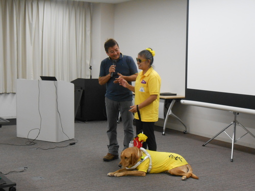 親川さんの座学から始まり、障がい当事者講師として桐原さんと盲導犬のうぃっぴー君との体験やお話もありました。