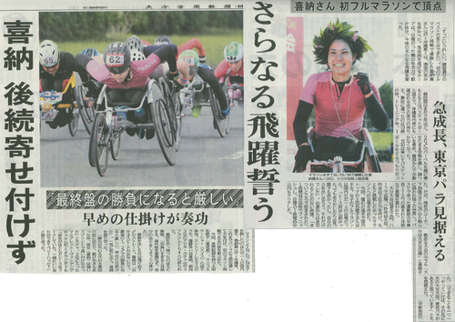 10月30日に開催された「大分国際車いすマラソン」で喜納翼さんが1時間44分56秒で初優勝を果たしました。