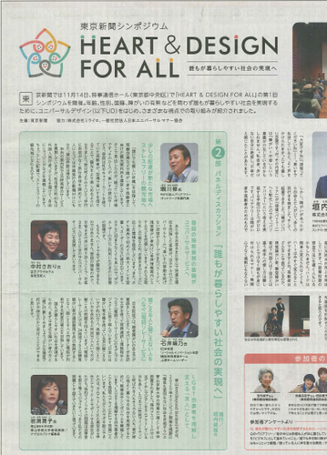 11月14に開催された「HEART & DESIGN FOR ALL」の第1回シンポジウムの記事が東京新聞に掲載されました。