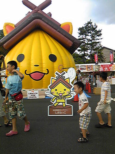 会場では、この映像館のほかに、飲食エリアがあったり、しまねっこダンスなど演じられる舞台などもあって、なかなかのにぎわいでした。夏に行ったひとは、暑くてガラガラだったよーという声もありましたが、これから涼しくなるにつれて、賑わっていきそうな気配です。