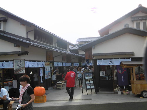 神話博のついでに、神門通りにできたばかりのご縁横町も見てきました。勢だまり前の交差点に面して10軒ぐらいのお店が一体になったミニ買い物横町なのですが、街並みになじんだ雰囲気もいいし、売っているものもみんなよさげです。建物の中を通り抜けられるようになっているあたりは、建築としてもみどころありです。オープンしたてということもありますが、かなりの賑わいでした。神門通りが、さらに活気づきそうです。