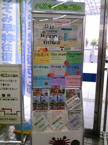 松江駅の建物の中に、バスターミナルを案内する表示サインがつくられていました。