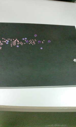 黒のパネルに、きらきらしたピンクや紫のビーズがちりばめてあって