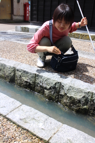 段差や石畳のあるところでは足元を白杖で確認しながら進みました。