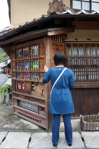 すべてがレトロな雰囲気で、自動販売機まで木の箱に入っています。