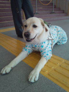 5月8日、ノア君のパピーウォーカーさんから盲導犬マナーコートを送っていただきました。ノア君マナーコート よくにあいますね。