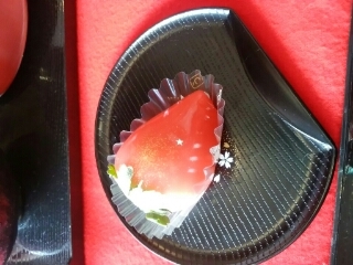 お饅頭はイチゴをそのまま包んであり、イチゴの美味しいお味でした。限定20個用意されたそうですので貴重なお饅頭をいただきました。