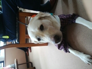 アラン君は北海道盲導犬協会に行きました。ダウンしてとっても嬉しそうな顔をしています。