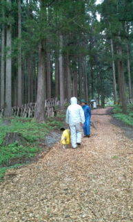朝から雨が降り出し、雨カッパを着ての森林セラピー体験をしました。