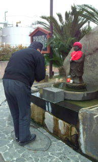 お湯かけ地蔵さま拝んでいるところ