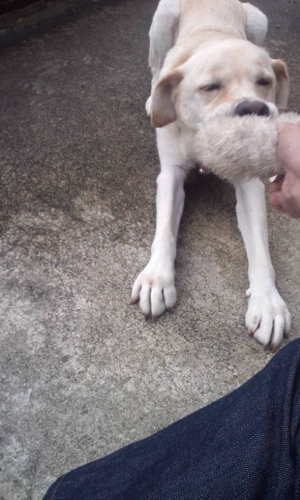 せまい所ですので 1メートルくらいの所に遊具を投げてやると拾いに行き うれしくて家の周りを走り回りますが