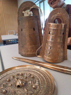 学芸員さんが銅剣、銅鐸、鏡のレプリカを用意してくださっていて、手で触りながら拝見しました。 感激しました!!