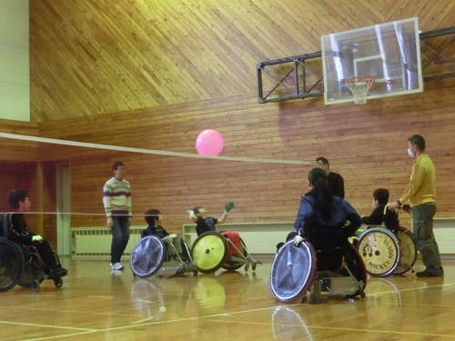 子供から大人まで一緒に風船バレーや車いすラグビーや車いす野球を楽しく体験できました。