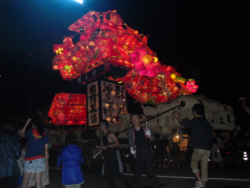 高さ約7メートル、重さ約5トンの大型あんどん同士が激突して壊しあい迫力満点でした。
