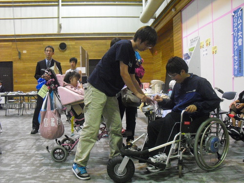 会場では、チーム紅蓮の展示ブースで事業所紹介や雪道安心安全車いす快適AQUROの紹介などをしました。
