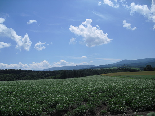 代わりに小麦畑とジャガイモ畑と十勝岳を写してきました。