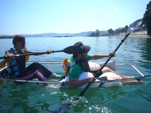 海の中がのぞける「シースルーカヤック」に乗って海に漕ぎ出してみたり、