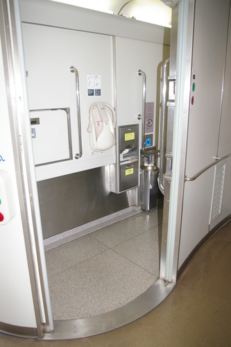 写真2:多目的化粧室入口 ドアが曲線なのがわかりますか?