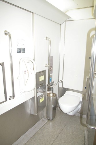 写真5:大型化粧室内部 両側手すり、ベビーベッドあり。