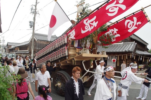 車には綱が繋がれ、この綱をみなで曳いていきます。