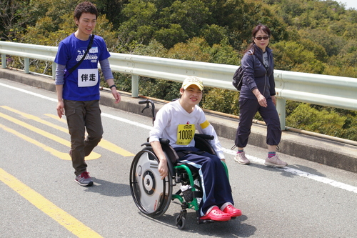 障がい者だけのスポーツイベントは全国にいくつもありますが、これほど規模の大きいマラソン大会の中の一種目としてバリアフリーコースが設けられ、しかも公道を走れる!というのは、(おそらく)この志摩ロードパーティだけ!!