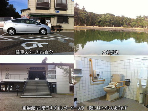 宝物館先の本堂には固定スロープがあり、参拝も可能。境内最大の見所である大泉が池周辺もアクセスできますが、手動車いすでは、砂利道に車いすのタイヤが取られて移動し難い箇所も多いので、介助者がいた方が移動の負担は軽減されるでしょう。