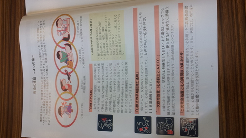 聴覚に障がいのある方、中途失聴者の方そして、私の所属している要約筆記「虹」で米子消防署から職員さんに来ていただき【救命処置】の講演会&実技講習を90分の時間で行いました。手書き&パソコン要約筆記で情報保障をしながら・・・今まで、不安に思っていたことなどが解消され、少しはお役に立てたかしら?職員の方から「とにかく、電話、FAX、メールなど、どんな方法でも良いので連絡を」と・・119に電話をして、 何も話されない場合でもGPS機能で、自宅がわかりますので救急車は出動します。極端な話ですが「一方的に、場所、名前などだけでも電話してください」と・・・いろいろな障がいのある方たちの緊急時、本当に大変なことです。回数を増やして、安心に生活できると良いですね。