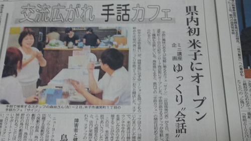 県内初の手話喫茶店。sign と いう喫茶店オープンしました。手話を勉強したい人たちなどが、楽しそうに、時間を過ごしていますよ。☆☆☆水木ロードも歩道を広くするように・・・バリアフリー化も進んでいます。