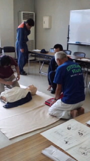 心肺蘇生法、AED、異物除去などを2時間くらい。