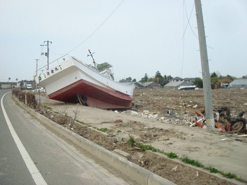 港の近くにはまだ漁船が打ち上げれたままの7状態です。