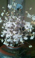 近所のかたから彼岸桜をつぼみでいただき、客間に飾っていました。 花が咲きました!写真を1枚のせます。 としまるでした