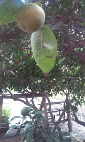 さて、 写真を2枚載せます。 手を当てて写していますが、 庭の側の方では みかんがたくさん実っています。 夏みかんとかハッサクとか植えていますが ミカンの写真と 柿も実を沢山つけていましたので、、ミカンと柿の写真2枚載せました。 実りの秋!