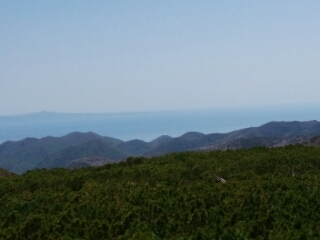 国後島がはるか向こうに見えるでしょうか?知床峠から撮影(携帯電話のカメラで写したので見えないかもしれません。 微笑)
